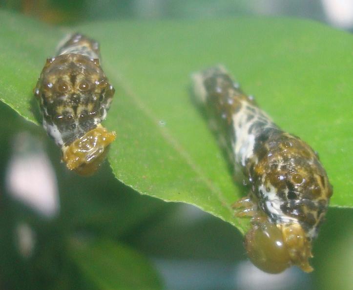 今年なかなか出番の少ないクロアゲハのクロイモさん。 VIP待遇にてしっかり今年も育成しています(´ー`A;) アセアセ 今朝は仲良く2匹揃ってのお食事・:*:・(*´エ`*)・:*:・ 別角度から・・ お食事後は・・・ なぜか1匹増えて3匹で並んで2度寝タイム(; ̄ー ̄A アセアセ・・・ 左の2匹が若干小さいですが同時期に孵化した子たちです。 実は3匹ではなく・・・ 6兄弟でございます( ̄Д ̄;υ)タラー… みんな元気に育ってますよー(´- `)フッ(´ー `)フフッ(´ー+`)キラッ